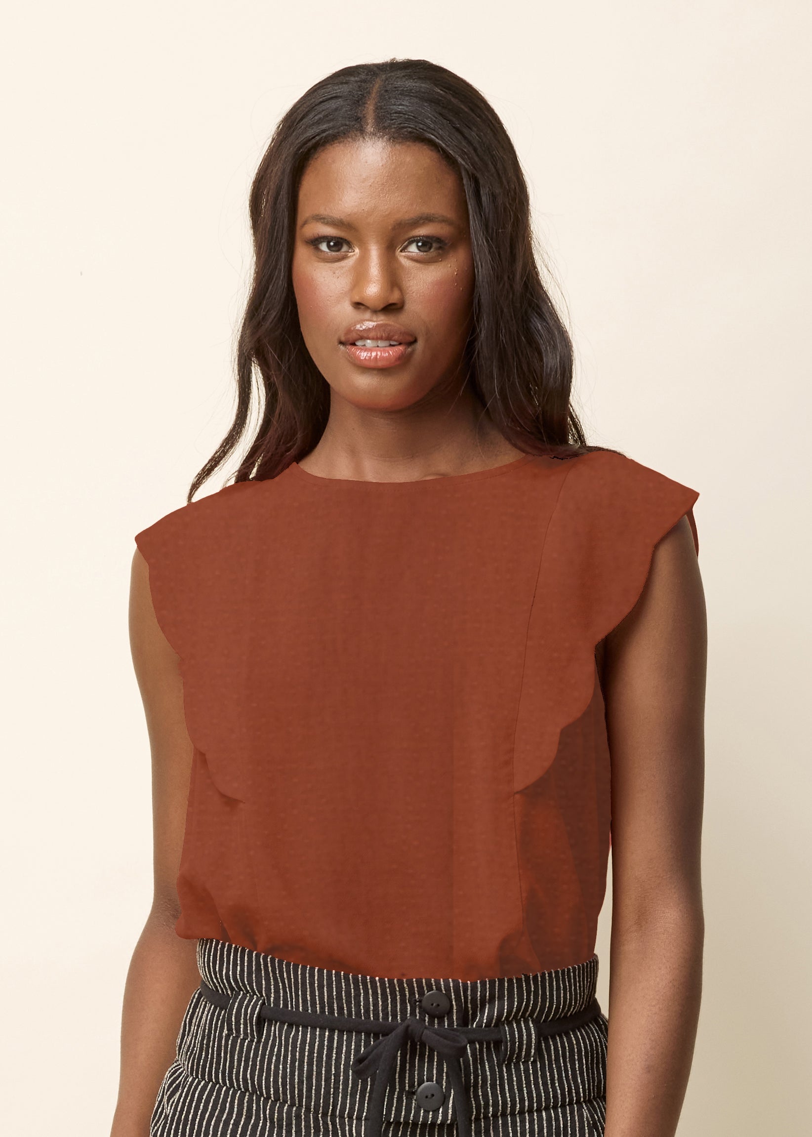 Jolie haut léger sans manches, on adore le côté ondulé de ses volants qui viennent recouvrir les épaules.